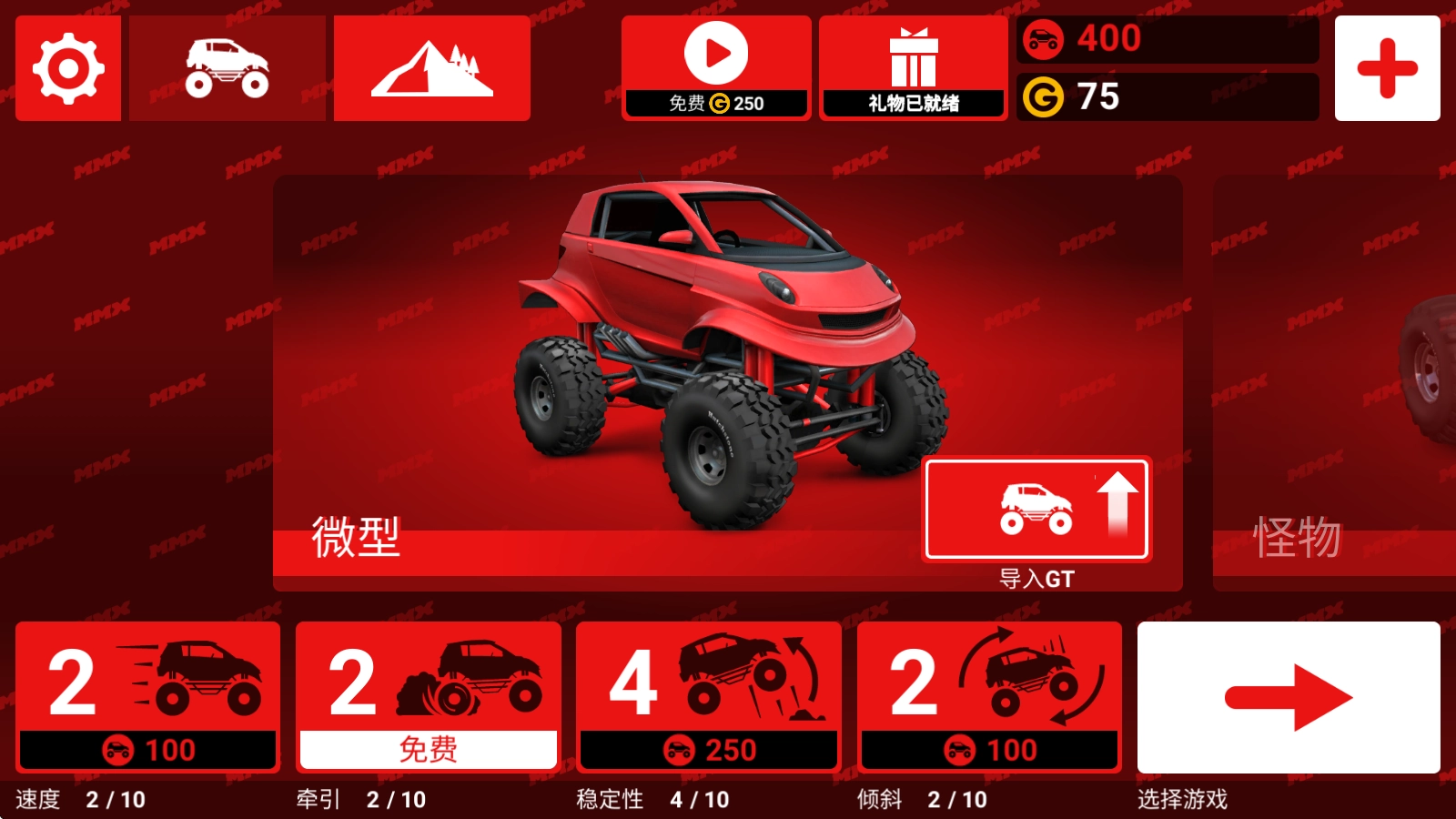 回到主界面,我们还可以去强化自己的汽车。