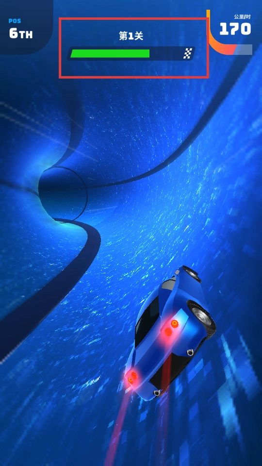 3、关注上方的关卡进度条,在赛道中持续行驶,推进【第1关】的进度。