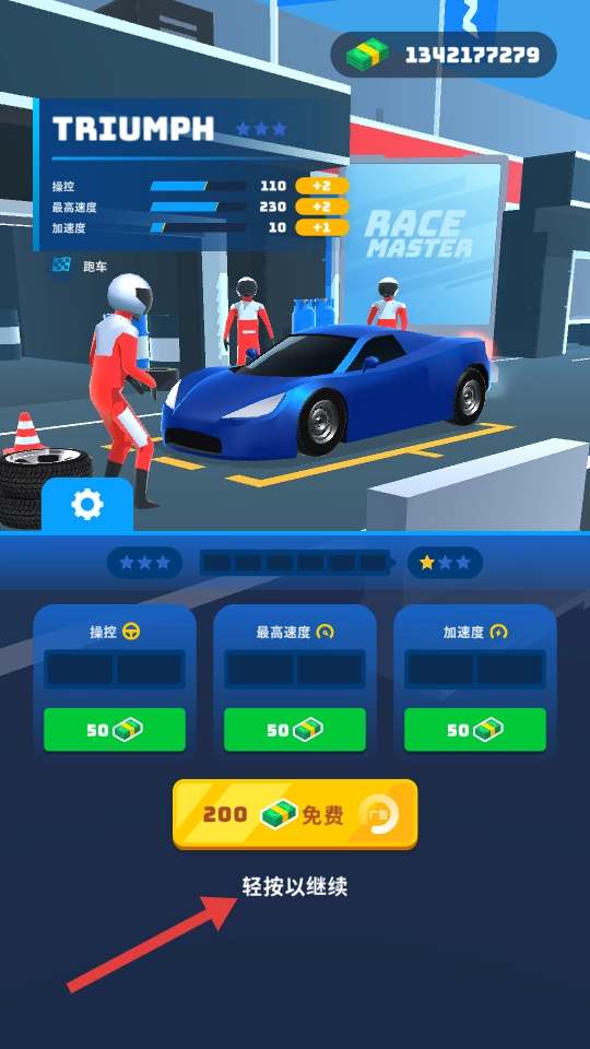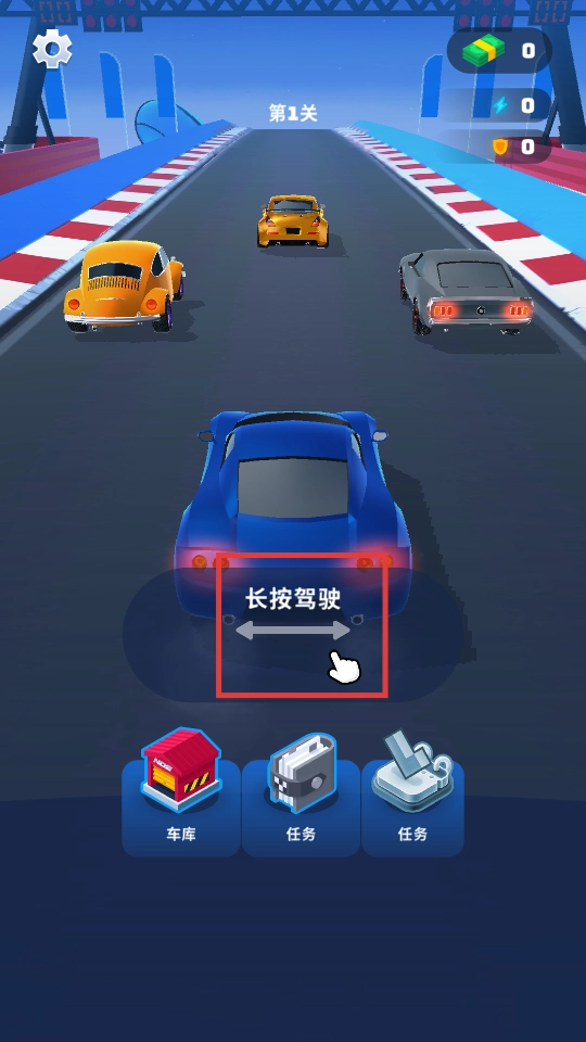1、进入【第1关】后,通过长按屏幕来操控车辆行进,从而参与这场赛车竞赛。