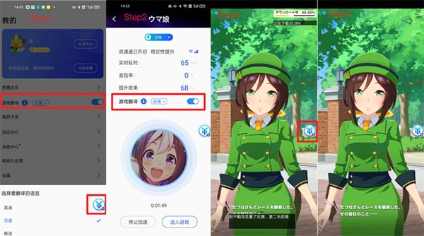 在游帮帮加速器里选定需要加速的游戏,进入对应的加速界面,打开【游戏翻译】选项;等翻译功能成功启用后,游帮帮加速器的悬浮窗就会显示出来。