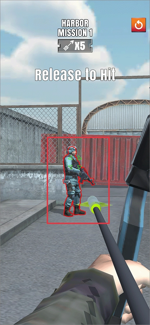 在游戏里,玩家只需按住屏幕就能操控角色对准敌人,等准心锁定敌人后松开手指,箭就会发射出去。