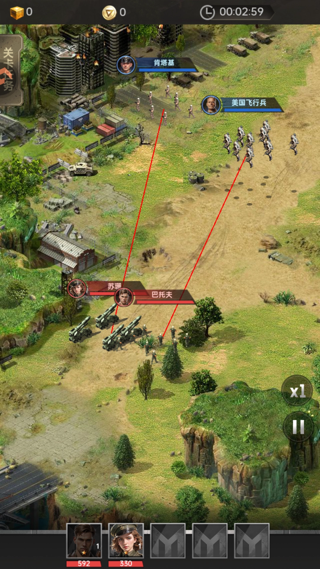 黎明战线最新版,打开游戏后会先送两个将领,将他们进行上阵。