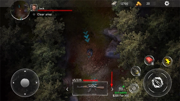 进入关卡后,左侧的按钮用来控制角色移动,右侧则是负责开火射击以及使用各类道具的按钮。