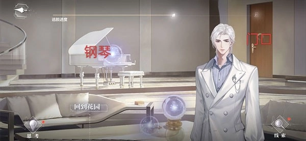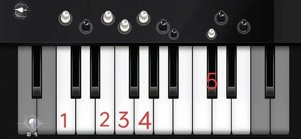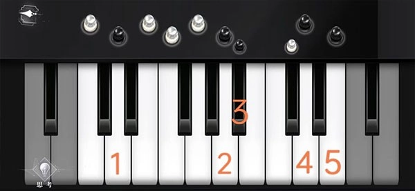 第三个房间——先在门口处进行观察,接着到钢琴处观察,之后进行弹奏操作。弹奏时仅需按下白色棋子所对应的琴键,弹奏的具体方式与结局一图中展示的一致。
