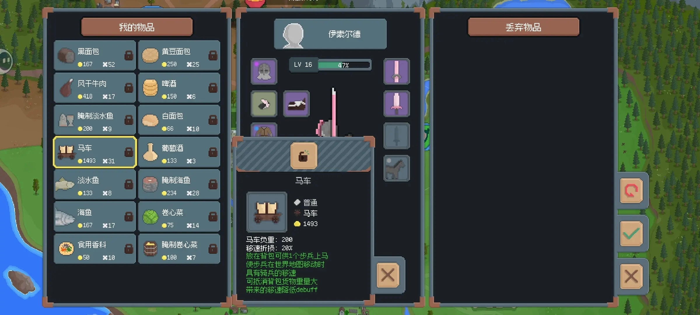 游戏前中期尽量避免战斗,等兵种升级到3星,并且兵力达到40到60以上时,就可以开始打劫商队了。打劫获得的战利品直接卖掉换钱,用来购买食物和马车——马车不仅能减轻负重,还能让移动速度更快。