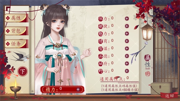 进入作品后,尽量把各项属性都刷到20以上,这样做主要是为了让排名能达到98500名以上。(可以在属性赋值的环节存档,看到属性数值差不多达标时,就进入排名页面查看初始排名情况)