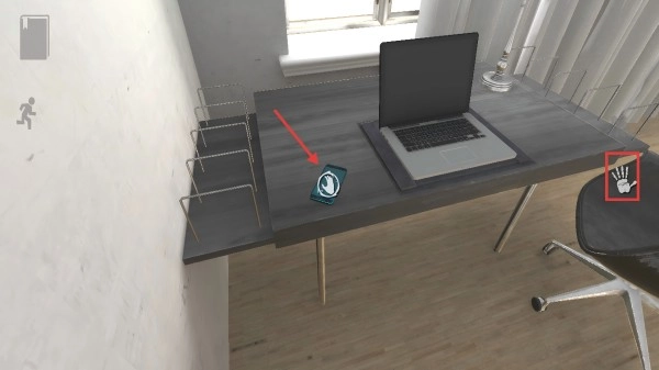 1、我们靠近门,点击右侧手掌标识,与门上互动点交互,尝试开启门,进入下一个场景。