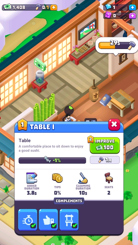 1、通过不断升级店铺来解锁更多美味的寿司,并招募更多员工、升级设备来提高效率,带来更高的收益。