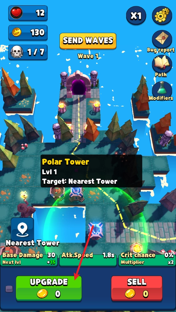 2、点击防御塔即可对其进行升级。