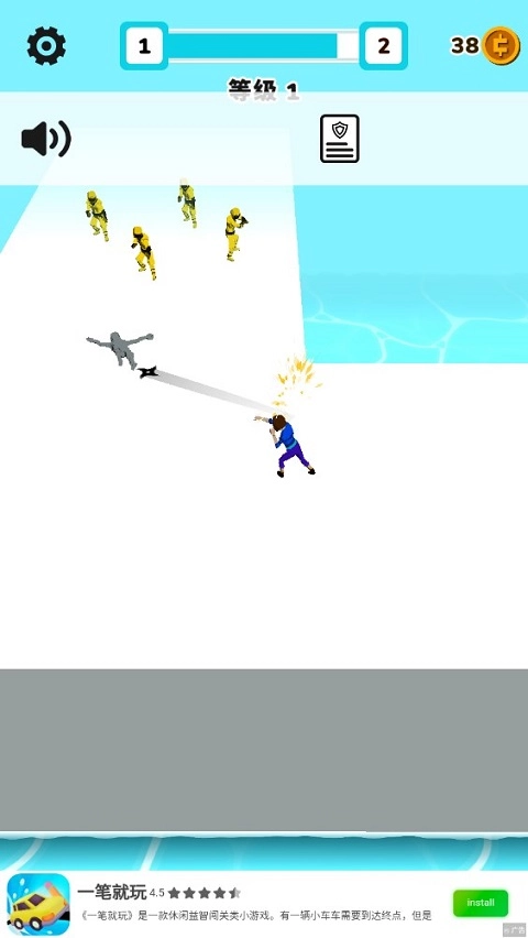 2、游戏中敌人的强度会通过不同颜色来标识,比如最基础的敌人身着红装,而遇到其他颜色服装的敌人时就得留意了——他们不仅会使用武器,血量还相当高。敌人的攻击方式多种多样,新手玩家刚开始可能难以应对,但经过几轮操作后,通常能对攻击的距离和频率形成大致的把握。只要掌握好攻击距离,及时躲避敌人的攻击,就能消灭所有敌人。