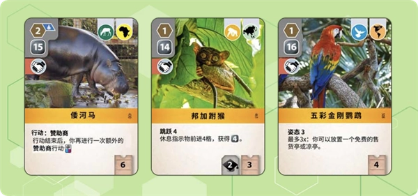 卡牌卡:通过抽取与动物、赞助商及保护项目相关的卡牌,来拓展战略选择空间。