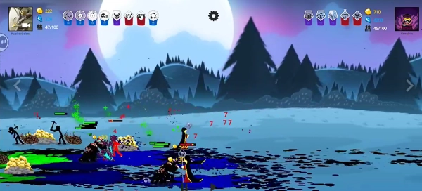 3、战斗中,点击右侧相关按钮,能指挥火柴人战士行动,让他们在战场上移动、攻击,与敌方火柴人展开激烈对抗。