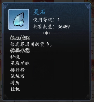 4、灵石:修真界通行的核心货币,可用于兑换道具、强化装备等各类修仙所需消耗。