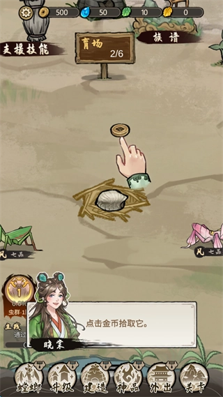 1、游戏开始后,玩家会获得两只初始螳螂,需要把其中一只螳螂拖拽到另一只螳螂的旁边。