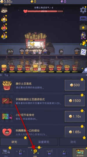 3、玩家可以点击屏幕下面的发展按键来为研究餐车的经营方式。