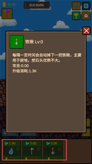 随着金币积累,你可以逐步解锁锤子、铁锹、盾牌等道具