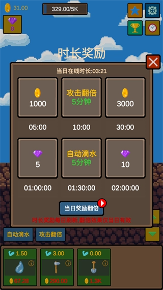 游戏具备放置机制,时长奖励每日刷新,翻倍效果仅当日有效,同样能积累成果。