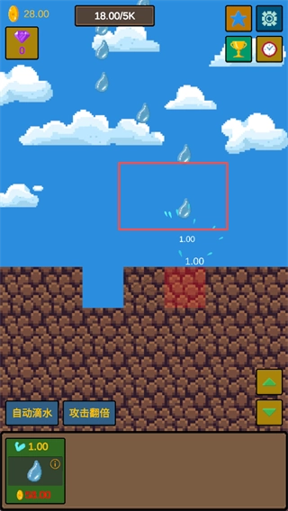 初期主要通过点击让水滴不断落下击打石头,每次命中都会获得金币,前期金币积累较慢,但请保持耐心,坚持点击是关键。