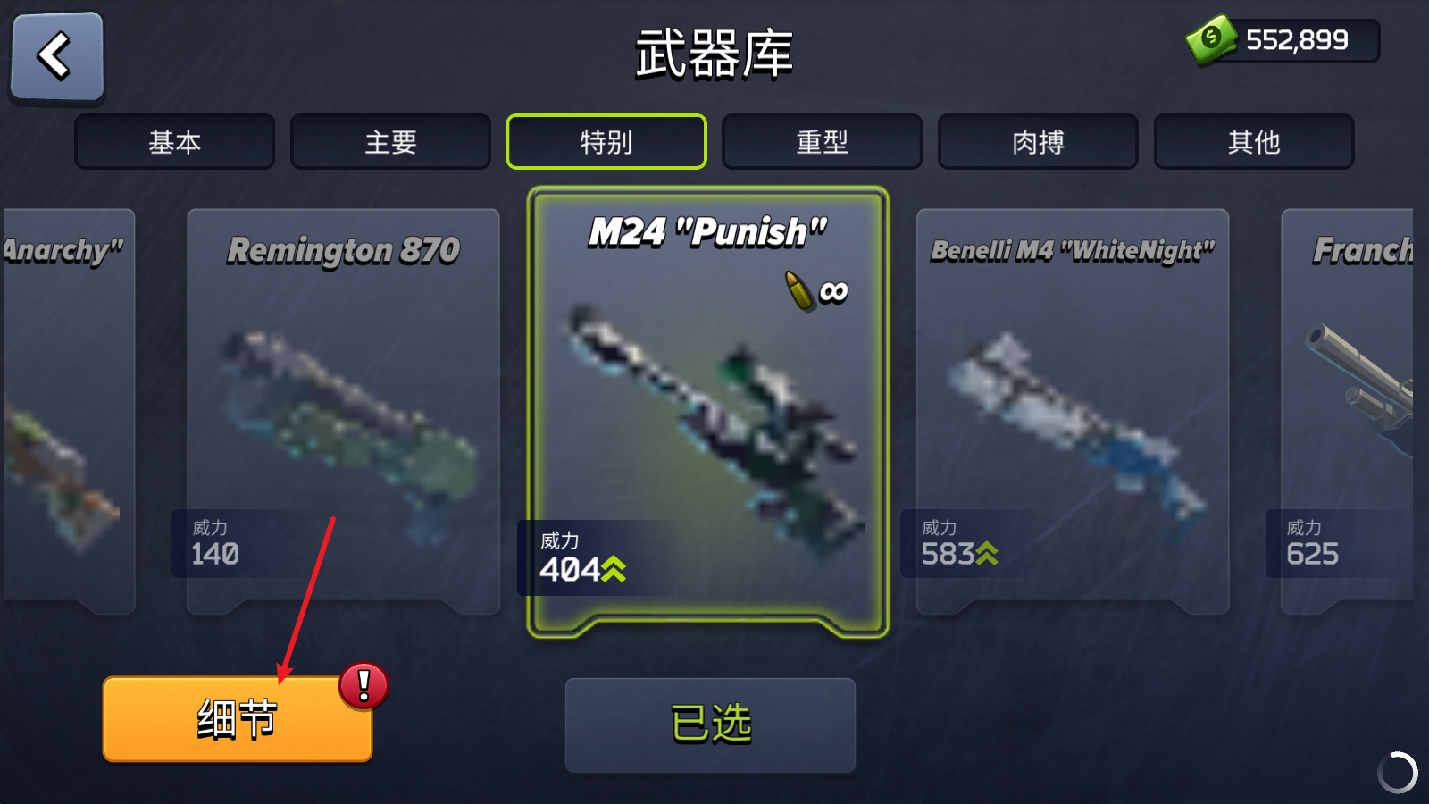 2、接着找到你已拥有的武器,点击左下角的细节。