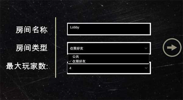 设置房间,包括房间名称,房间类型(公开or仅好友)以及房间最大人数(2-4人),点击下一步;