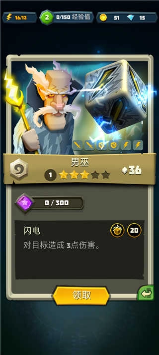 点击停止转动后会显示抽奖结果,这次小编抽到的是三颗星的男巫。