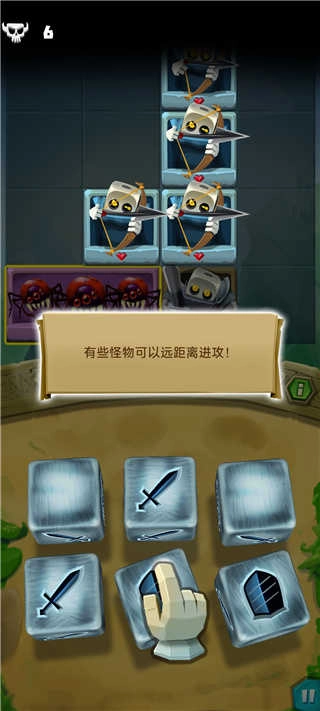 当敌方数量增多时,骰子会解锁新技能,而盾牌能够抵挡本轮敌人对你造成的所有伤害。