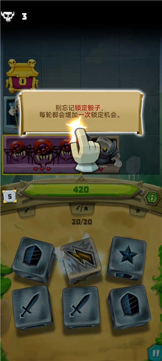 游戏时别忘了锁定带特殊技能的骰子呀,每一轮都会多一次锁定的机会哦。