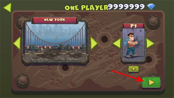 在选好地图和角色的界面,点击下方那个绿色的三角按钮——这是进入关卡战斗的关键一步,点击之后就能开启当前关卡的僵尸抵御挑战了。