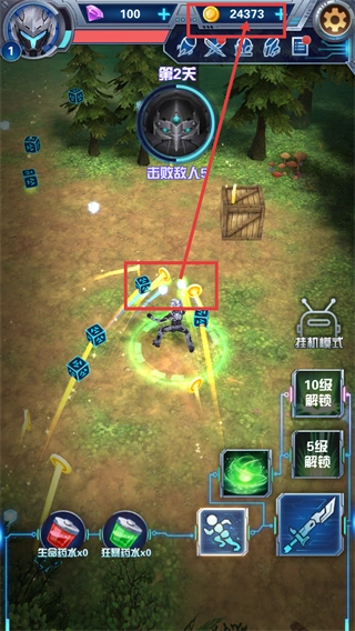 击败敌人后场景中会掉落道具,顶部的金币资源随之更新为【24373】,接下来需要继续操控角色击败剩余敌人,以此达成当前关卡的目标。