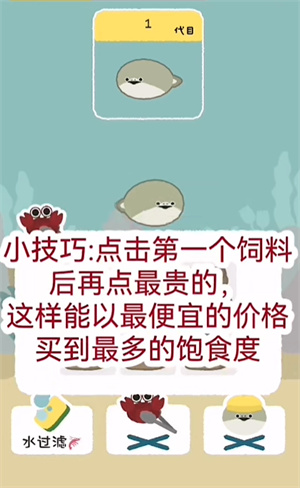 3、有一个小技巧,先点击第一个饲料再点最贵的,这样能以最便宜的价格买到最多饱食度。