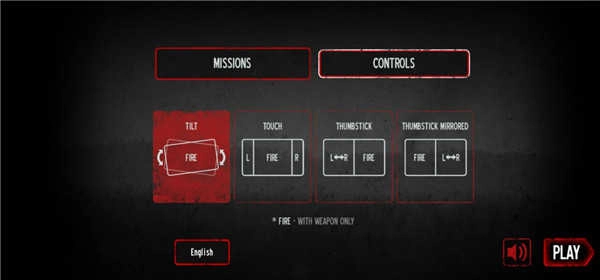 玩家进入游戏后,需从TILT、TOUCH、THUMBSTICK、THUMBSTICK MIRRORED这四种操作方式里挑选一种操作模式(该操作模式可在主界面右下角的设置选项中进行选择)。小编提示:
