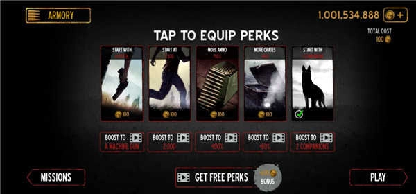 ①MASSACER模式:完成前10个关卡任务后即可开启,在该模式下需要尽可能多地击杀僵尸,击杀僵尸能获取金币,因此可以借助这个模式积累大量金币。