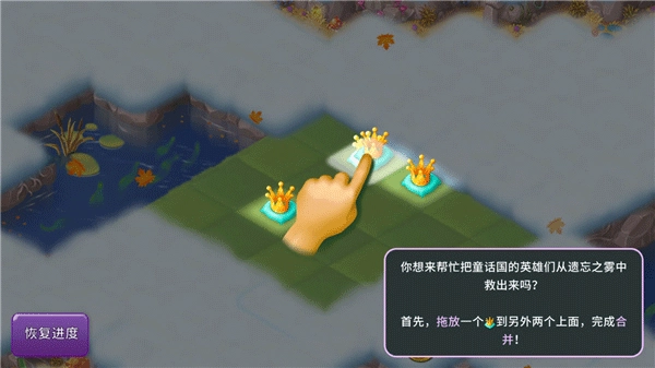 进入游戏,看到相同图案,点击拖放合成;