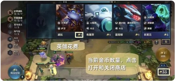 点击英雄即可完成购买,已购买的英雄将进入备战区;点击商店区域或屏幕上的任意空白位置,都能够关闭商店。