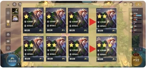 升星规则为:3个相同星级的英雄可以进行升星操作,英雄的最高星级为3星。