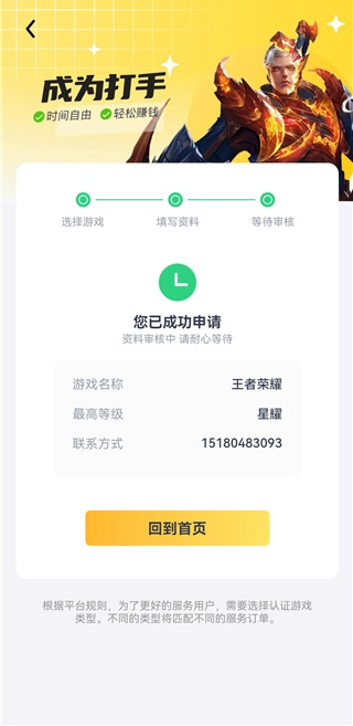 最后等待审核通过即可成为打手了。