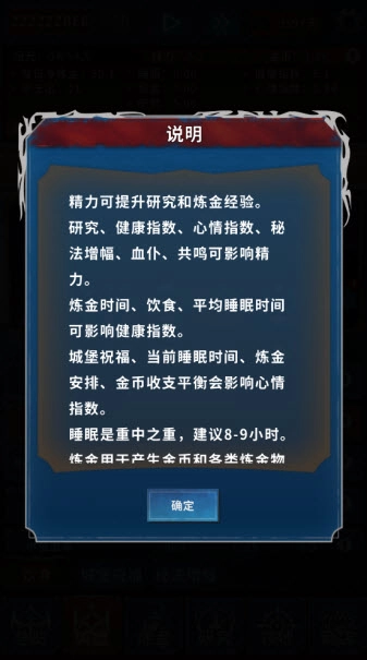 城堡祝福、当前睡眠时间、炼金安排以及金币收支平衡这些因素,都会对心情指数产生影响。