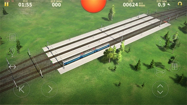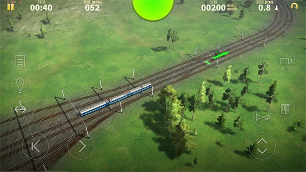 游戏正式开始后,左下方的箭头按钮负责控制火车的前进与刹车,而右下方的上下箭头则用于切换不同的火车轨道。