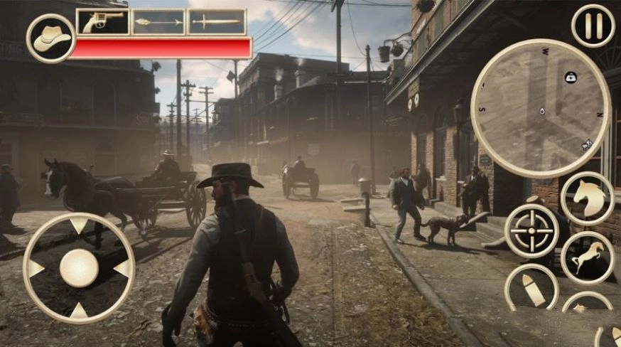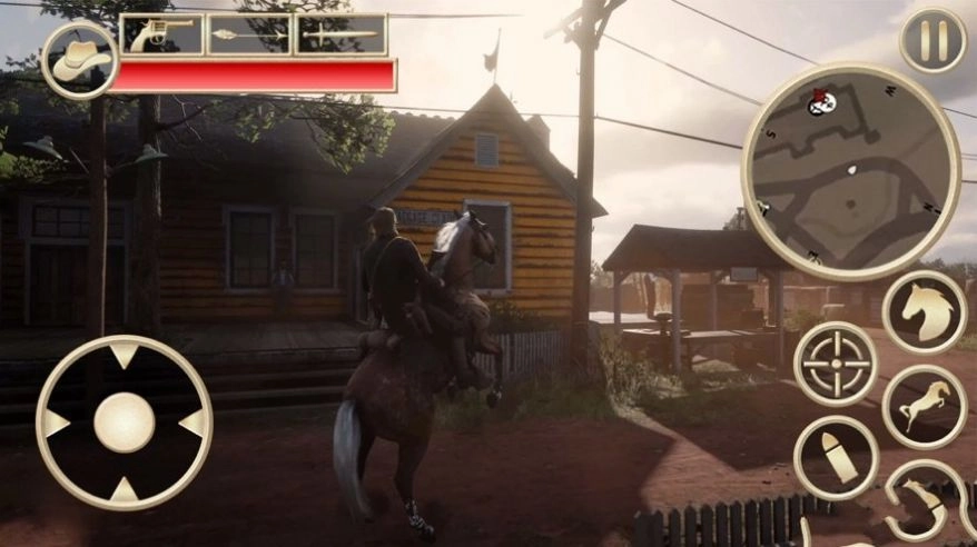 游戏中设计了多种多样的战斗玩法。玩家能够化身为西部牛仔,骑着骏马踏上探索世界的旅程。