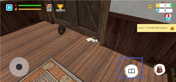 进入格斗学校模拟器后,走到门前,点击右下角的书本图标,阅读门下的便条。