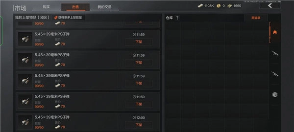1、(强力推荐)倒卖子弹,这边我推广倒卖这个PS弹,一颗成本22,可以挂70,直接挂满八组净利润就有三万多,重点是卖的很快(系统会扫货),你开一把游戏跑把刀打把伪装这八组就卖完了,如果你有特权,直接上16组,就是白给了一局都能赚6万,差不多十分钟卖完还没限制离谱的很。