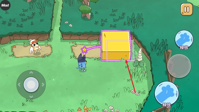 1、进入游戏后,拖动左侧摇杆移动,右侧则是魔杖按钮,点击即可使用。