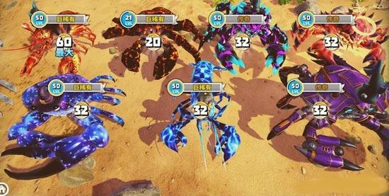 1.螃蟹的作战能力会随着战斗力数值的提高而同步增强,体型也会跟着变大,还能解锁钳子、硬壳等各类专属作战武器,对对手展开猛烈进攻。