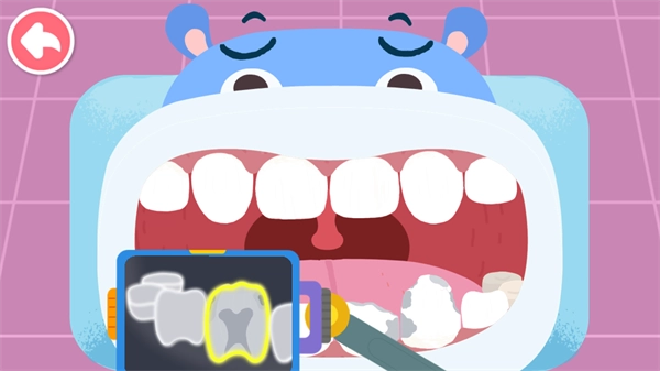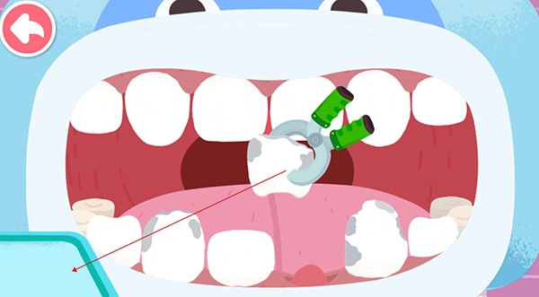 1、宝宝化身小牙医,给各类萌萌的卡通角色检查牙齿、治疗蛀牙。