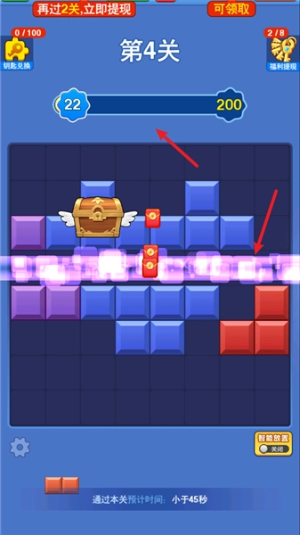 2、当凑齐一整行或一整列的方块时,即可将其消除并获得相应积分。