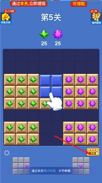 一心一亿红包版是一款俄罗斯方块题材的休闲闯关游戏,难度会随着关卡推进层层递增,极具挑战性。玩家需要仔细观察各种不同形状的方块,根据它们的位置调整方块形态,以顺利填满每一行每一列。在规定时间内快速达成任务目标,就能获得通关胜利,感兴趣的朋友可别错过啦!