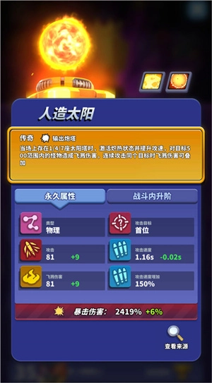 人造太阳具备极强的溅射伤害效果,且该伤害能够叠加。当防御塔数量分别达到1座、4座、7座时,会依次激活溅射功能并提升攻击速度。若搭配反应堆提供的增益BUFF以及重构带来的增伤BUFF,其输出能力将变得格外强劲。