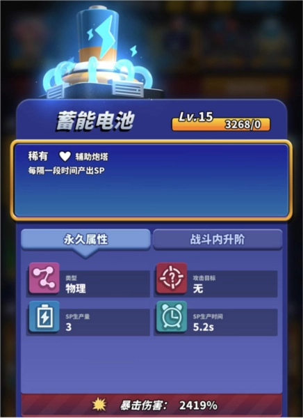 蓄能电池(建议保留3级及以上的蓄能电池,以实现利用最大化;若背包无空位,可将2级和1级蓄能电池合成,以此容错来购买炮塔并产出蛇形单位,为输出方强化炮塔)