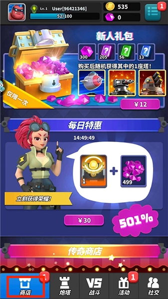 进入【商店界面】,这里设有“新人礼包”“每日特惠”“传奇商店”等各类道具板块,玩家能依据自身需求挑选对应的道具进行购买。