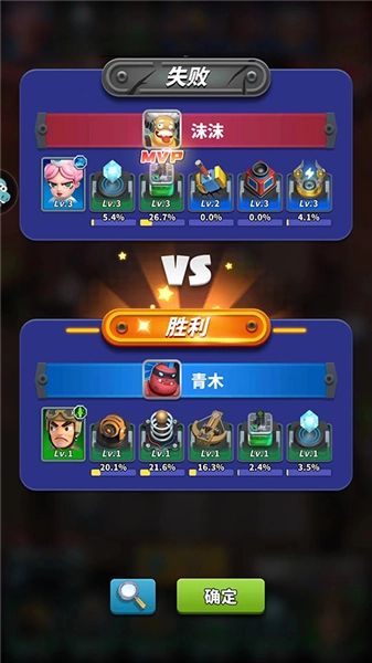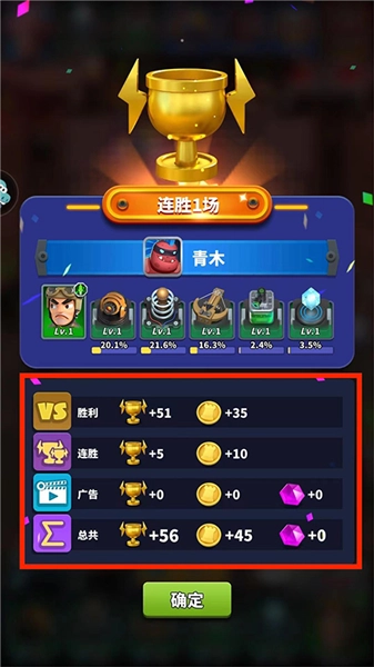 对战结束后,会进入【游戏结算】界面,在该界面中能够看到胜利方的炮塔阵容以及所获得的奖励。